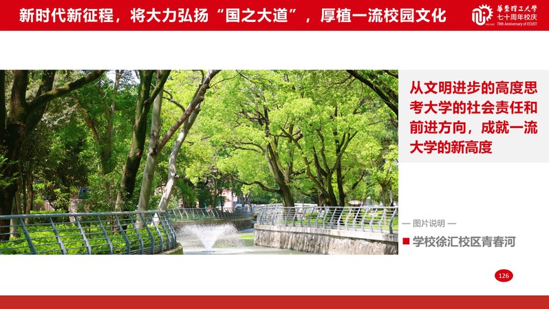 回望70年的办学历程,华理人始终传承勤奋求实、励志明德的精神品格。不论是“不畏艰险、迎难而上”的艰苦创业精神,还是“心有大我、无私奉献”的黄坡岭精神;不论是“矢志一流、顶天立地”的创新精神,还是“拼搏奋斗、为国争光”的乒乓精神;不论是“潜心耕耘、持之以恒”的汗水哲学,还是“学在华理、工程报国”的优良传统,这些薪火相传的精神财富,激励着一代代华理人心往一处想、劲往一处使,意气风发、昂首阔步,朝着高水平综合性研究型大学赓续前行。